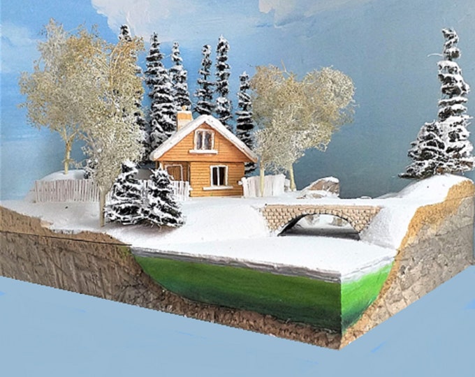 Scenic Snow Diorama, Handmade Chalet, Frozen Lakeshore (16.5 x 11.8 inches)
